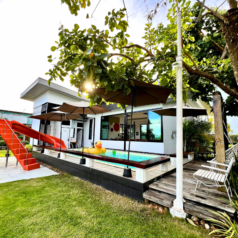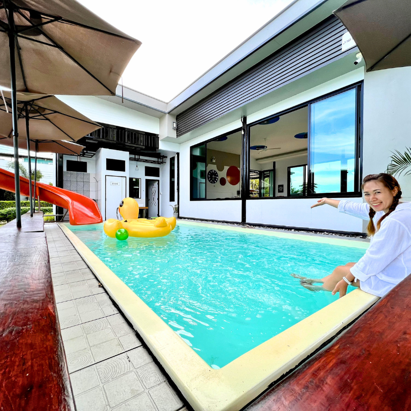 เหมาะสำหรับ หมู่คณะใหญ่ ด้วย 9 ห้องนอน 9 ห้องน้ำ พร้อม สระว่ายน้ำส่วนตัว และ สไลเดอร์